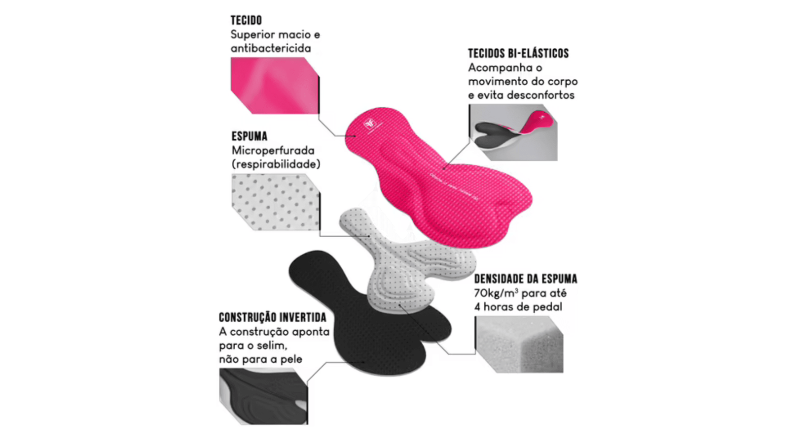 - Forro Invert Air: conforto e respirabilidade para até 04 horas de pedal;